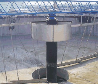 刮泥機(jī),是一種排泥設(shè)備。組成部分:刮泥機(jī)由桁車、刮泥耙、撇渣板、驅(qū)動(dòng)裝置和自控柜等到組成。分類:刮泥機(jī)主要有中心傳動(dòng)刮泥機(jī)、周邊傳動(dòng)刮泥機(jī)。中心傳動(dòng)刮泥機(jī)主要由工作橋、傳動(dòng)裝置、穩(wěn)流筒、傳動(dòng)軸、刮臂、刮泥板等組成。該機(jī)設(shè)有橫跨池子的固定平臺(tái),工作時(shí)其整機(jī)載荷都作用在工作橋中心;污水經(jīng)池中心穩(wěn)流筒均流到四周。隨著過流面積增大而流速降低,污水中的沉淀物沉淀于池底,刮泥機(jī)將沉淀的污泥刮集到中心集泥坑中,利用水壓將其從污泥管中排出。該機(jī)結(jié)構(gòu)簡(jiǎn)單,傳動(dòng)平穩(wěn),動(dòng)力消耗低,刮泥效果好,是一種理想的排泥設(shè)備;周邊傳動(dòng)刮泥機(jī)用于城市污水處理廠、自來(lái)水廠以及工業(yè)廢水處理中輻流式圓形沉淀池和濃縮池中,排除沉降在池底的污泥和撇除池面的浮渣。應(yīng)用領(lǐng)域:刮泥機(jī)主要應(yīng)用于鋼鐵、冶金、礦山、水處理等行業(yè)。